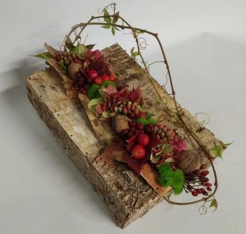We maken dit bloemstuk voor de prijs van 27 euro . Het stuk kan ook opgehangen of op een voet gezet worden.