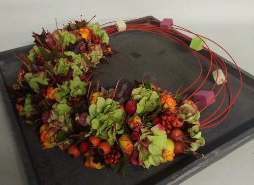 We maken dit herfststuk voor de prijs van 27 euro( schaal niet inbegrepen )