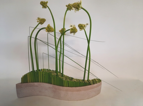 Hier dan mij volgend doe-pakket of bloemstuk , het is een spel geworden van geknipte grassen en bloemen. Het doe-pakket( met werkwijze ) komt op 28 euro, het bloemstuk op 33 euro.