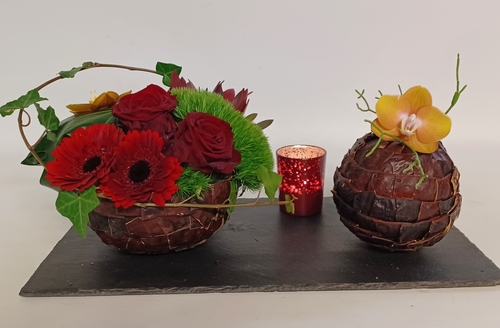 We maken dit bloemstuk voor de prijs van 30 euro ( excl. leisteen).