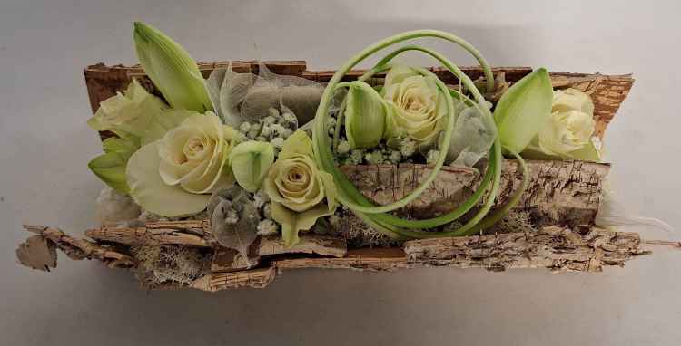We maken een winters tuintje en gebruiken daarbij de amarylis ( nog open te gaan op de foto ). Het bloemstuk wordt gemaakt voor de prijs van 35 euro.