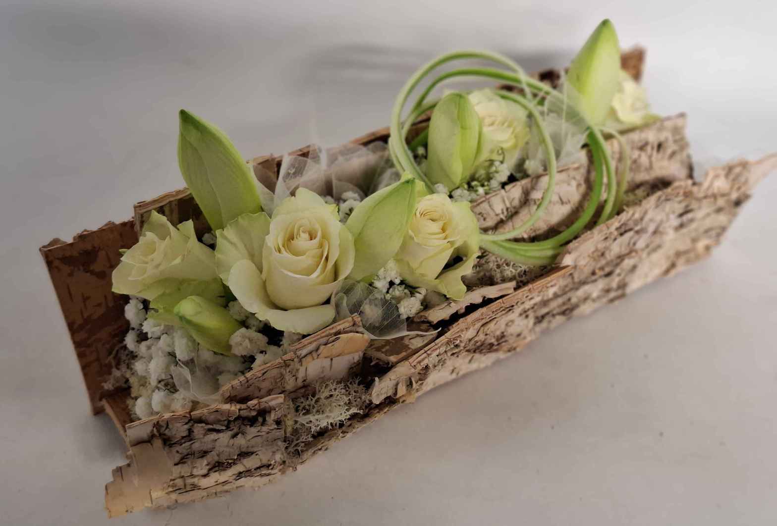 We maken een winters tuintje en gebruiken daarbij de amarylis ( nog open te gaan op de foto ). Het bloemstuk wordt gemaakt voor de prijs van 35 euro.